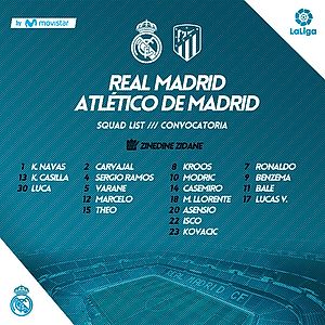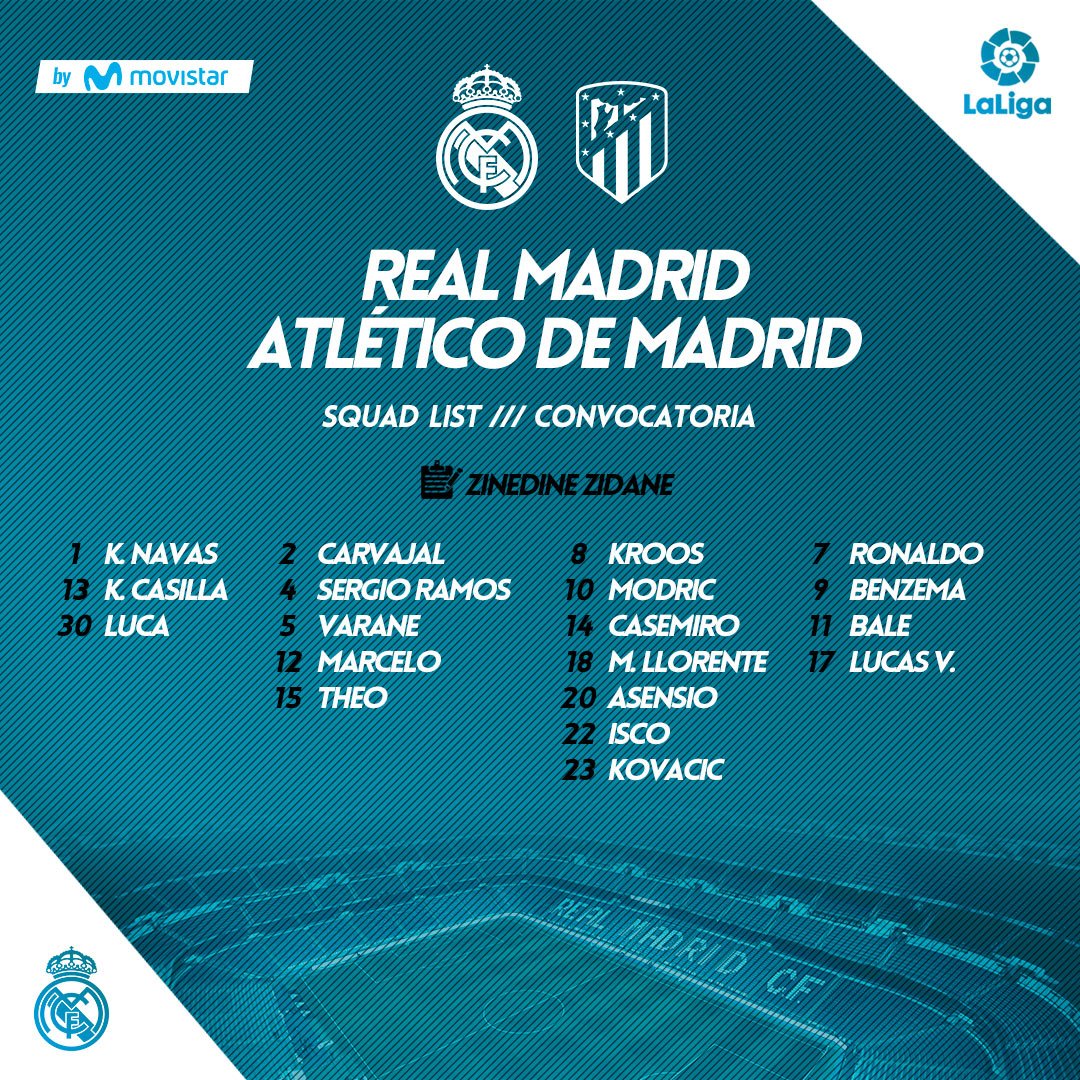 Зинедин Зидан заявил 19 игроков на матч 31-го тура Ла Лиги против "Атлетико Мадрид".