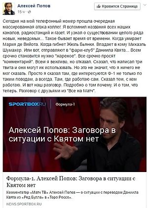 Но что сделал Попов? Выстрелил в фэйсбуке ворчливым постом. Отчитал коллег, которые хотели и могли привлечь внимание к его любимому виду спорта. Пусть и по печальному поводу.
