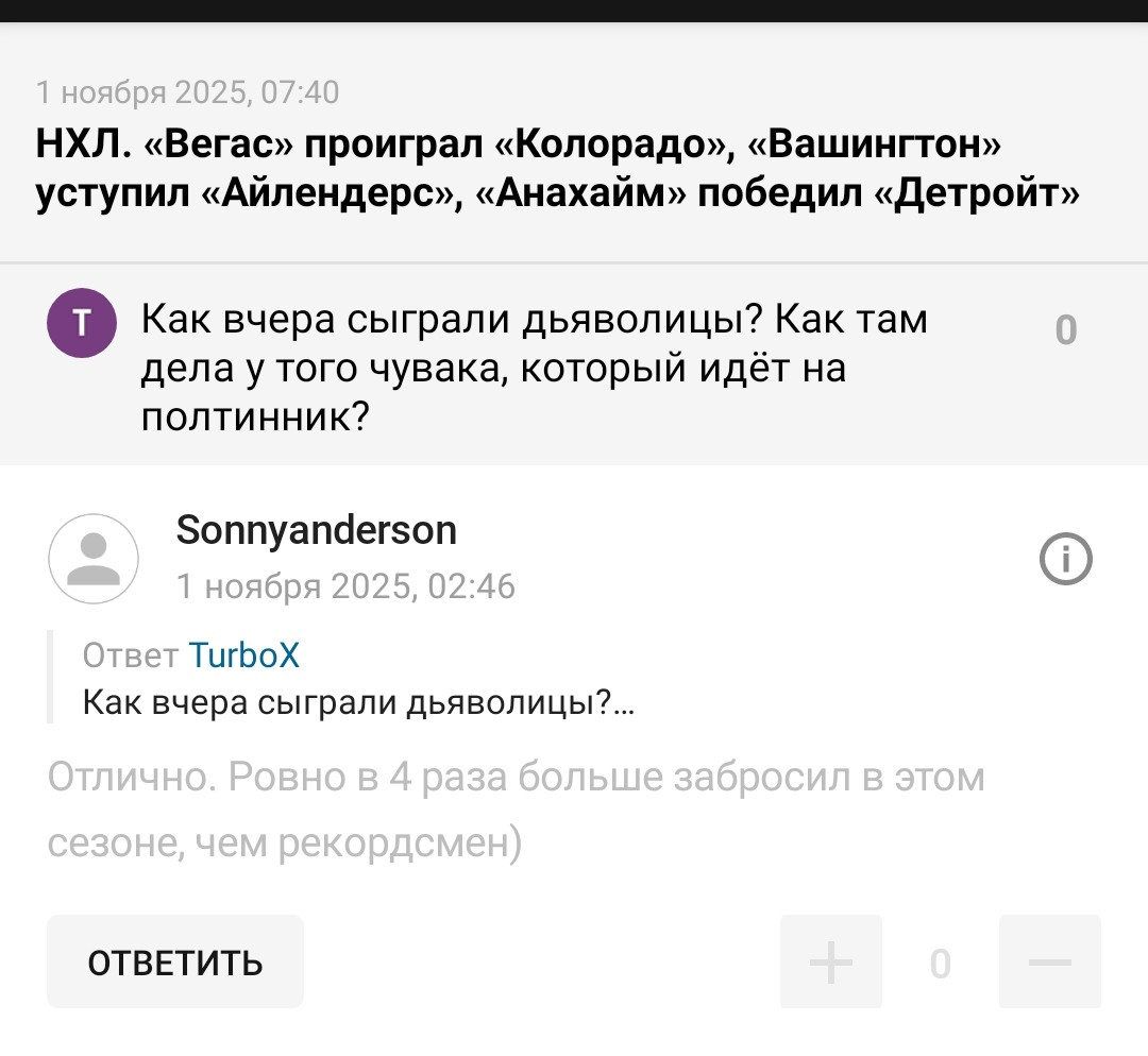 Как дела у Джека Хьюза, который по твоим утверждениям идёт на полтинник и забил в 4 раза больше Овечкина?i.postimg.cc/Y9RLyjFJ/IMG-20260111-153103.jpg