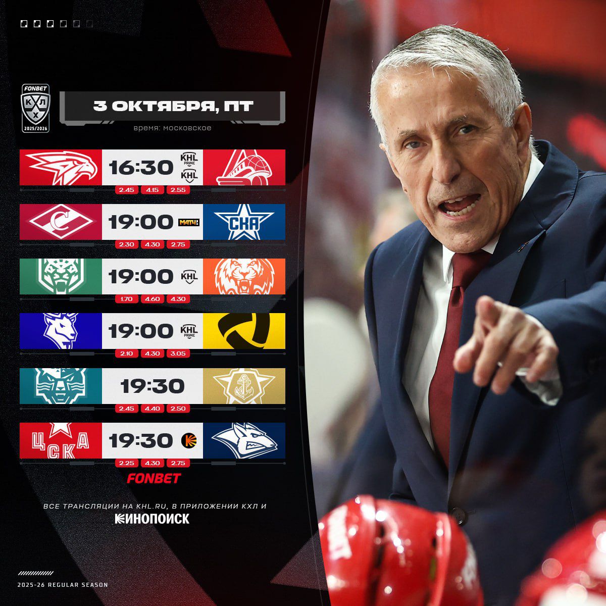 Расписание игрового дня FONBET КХЛ Много классных матчей в программе на сегодня! За каким будете следить?