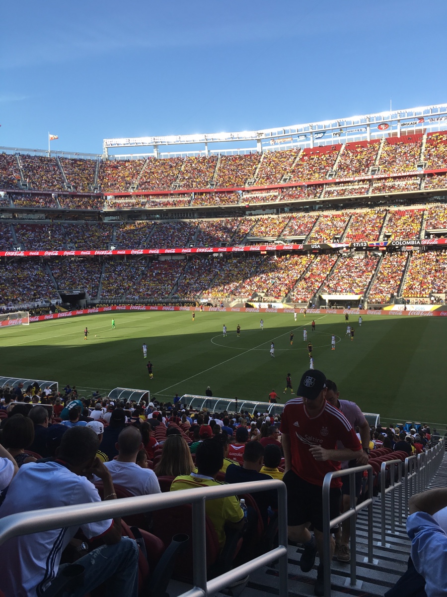 В поезде до Санта Клары (на матч открытие США-Колумбия) куча орущих детей колумбийских иммигрантов (фанатье) с веселыми родителями, в основном, мамами. Я еще не придумал, за кого болеть :)