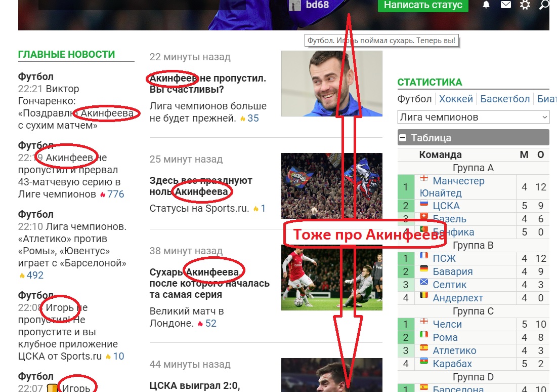 Добавляйте к статусу теги спортсменов, клубов и турниров. Добавить тег