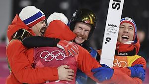 #сборная Норвегии Чемпионы Мира в командных соревнованиях  прыгунов с трамплина