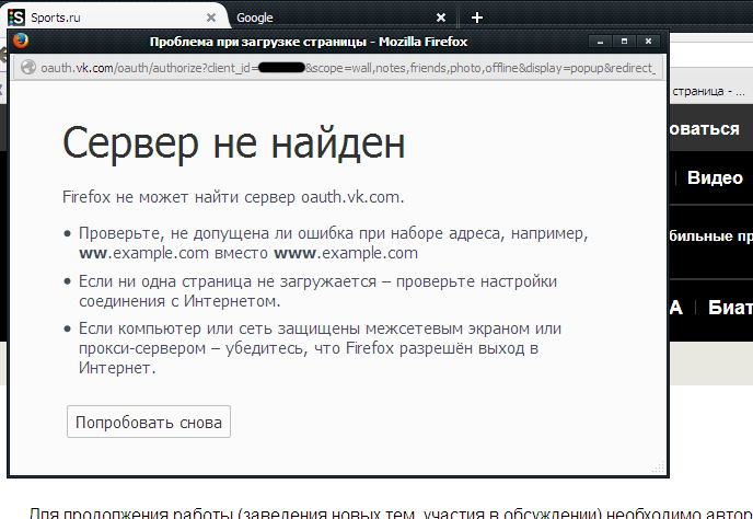 что за бред опять. то залогиниться нельзя через вк, то вот это: