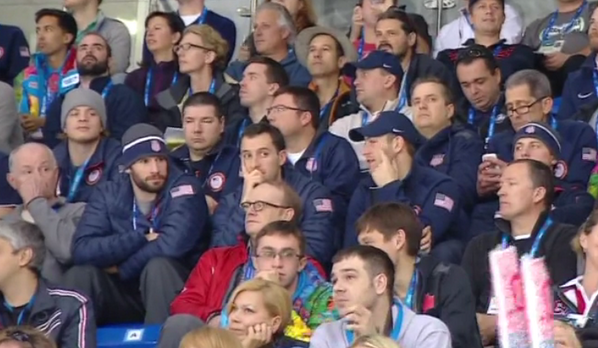 Мужская сборная США по хоккею пришла поболеть за женскую команду своей страны в матче против канадок.