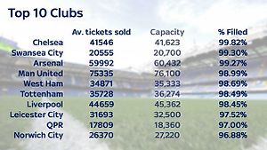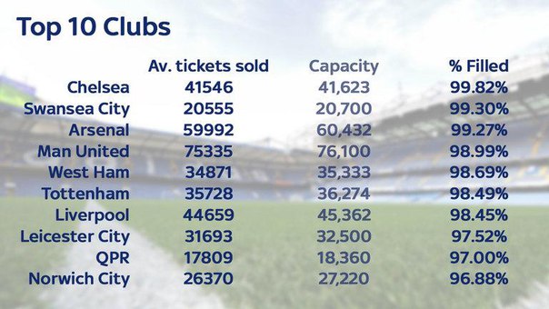 Средняя заполняемость #Стэмфорд Бридж в прошлом сезоне составила 99.82% (41546 из 41623) - самый высокий процент среди всех профессиональных клубов в Англии.(Sky Sports)