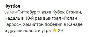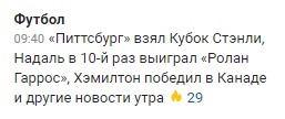 Всё, что нужно знать о футболе сегодня: #Питтсбург, #Рафаэль Надаль и #Льюис Хэмилтон :)