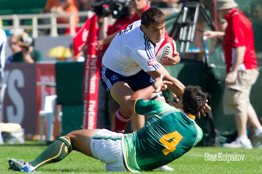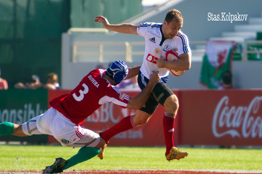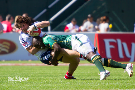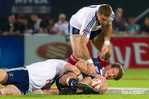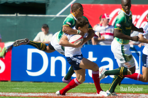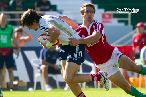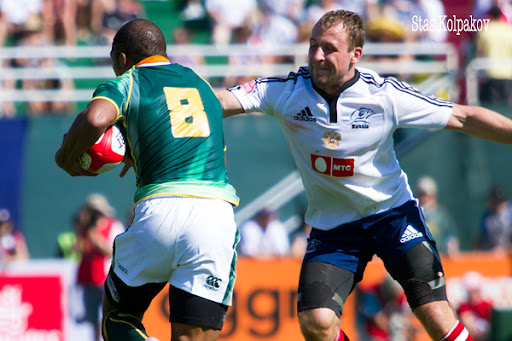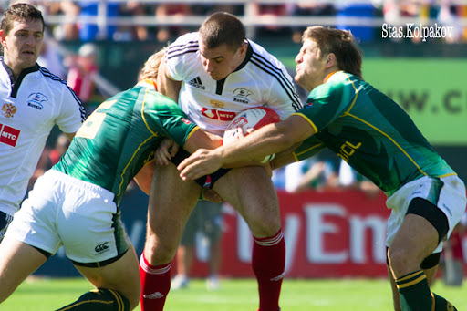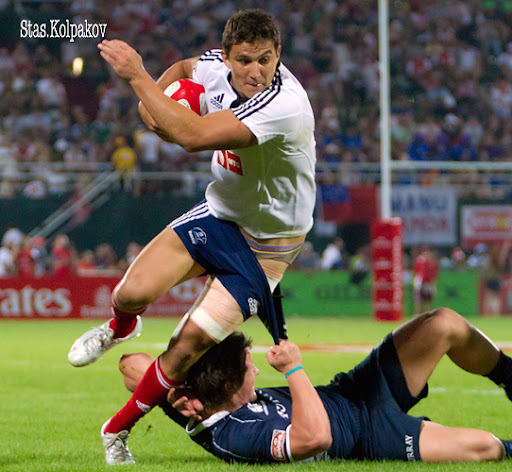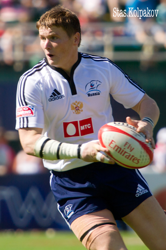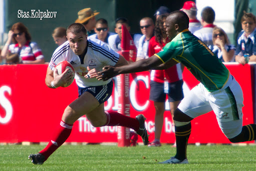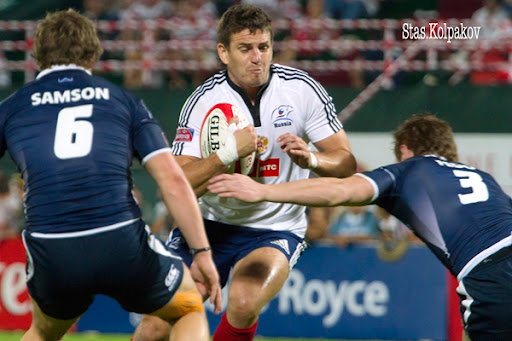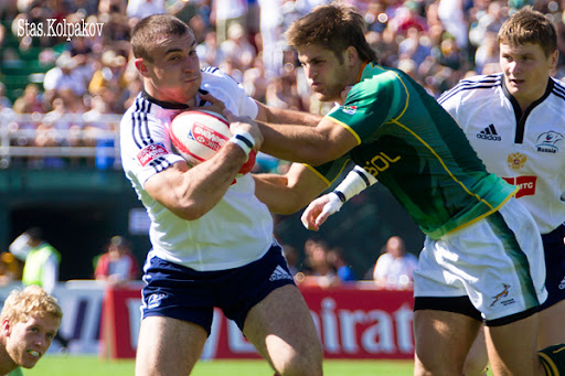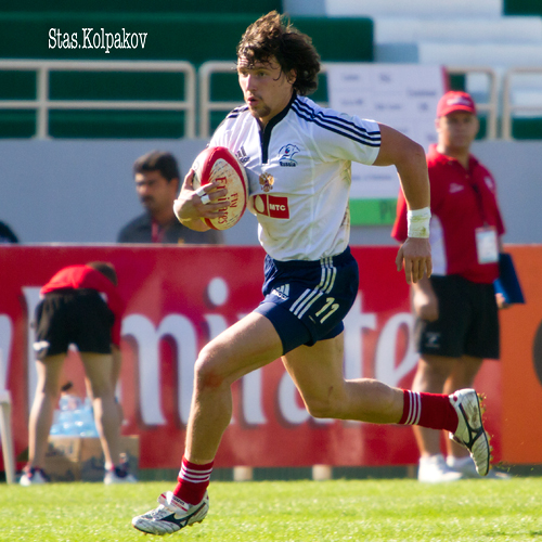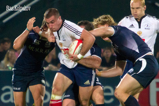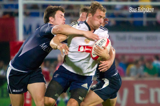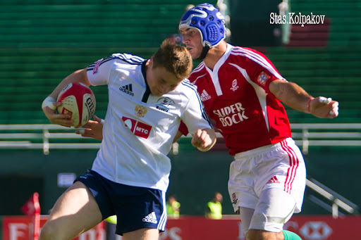 С южноафриканцами сборная России проводила свой первый матч в Дубае - и показала себя вполне достойно, уступив первый тайм в упорной борьбе со счетом 5:7. К сожалению, после перерыва грозный противник сумел значительно нарастить преимущество, положив две попытки. Ответное взятие зачетки, состоявшееся уже под конец встречи благодаря Николаю Горошилову, лишь подсластило горечь поражения - 10:19.