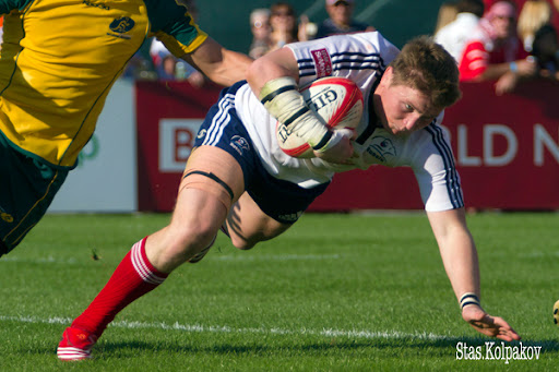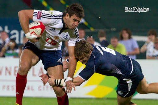Правда, как выяснилось, надежды эти оказались тщетными: суровые скотты оказались весьма сильны. Хотя счет открыли россияне: Владимир Остроушко в эффектном броске вонзил мяч в зачетное поле. Но шотландцы в итоге не просто выиграли, а выиграли даже с более крупным счетом, чем южноафриканцы и австралийцы - 26:10 (у нас еще одна попытка в активе Гостюжева).