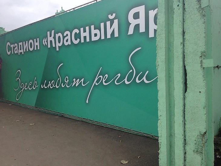 Кстати, в отличие от Енисея-СТМ, Красный Яр дал хорошее промо на улицах города. Именно большие баннеры меня и заманили впервые на регби.