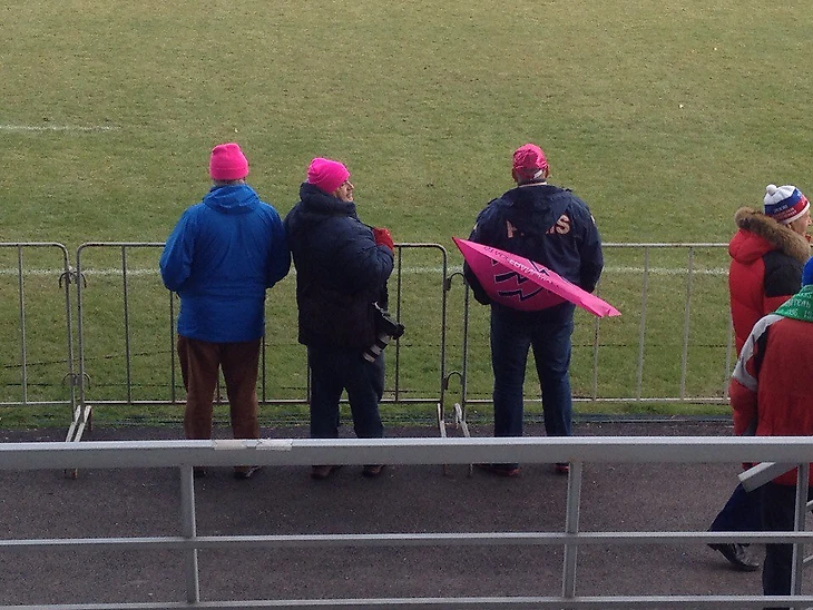 Два входа: один со стороны дороги, второй со дворов. Ни давок, ни очередей. На трибунах атмосфера добра и позитива, люди с термосом и в пледах создавали семейную атмосферу. Еще, на входе, судя по всему, раздавали палки-стучалки для шумовой поддержки.