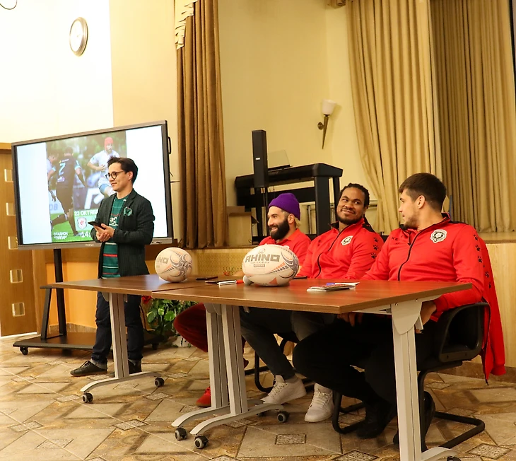 Игроки «Стрелы» Герман Давыдов, Омари Гриняев и Джереми Джордаан посетили гимназию № 3 Казани, где провели «Урок регби» для учеников младшей школы – всего встречу с регбистами посетили около ста ребят.