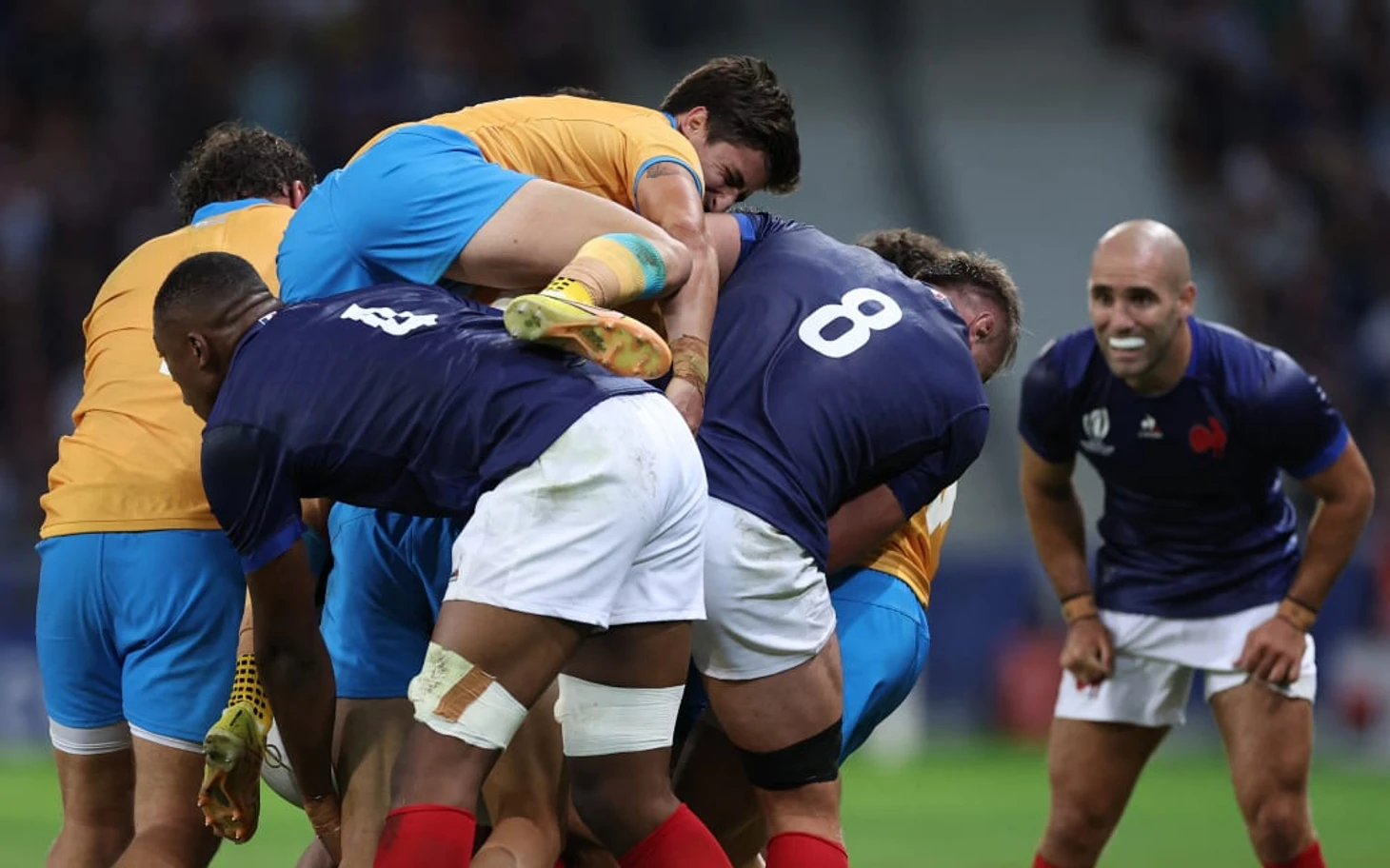 Франция в упорной борьбе в конце поединка сломила сопротивление Уругвая. Нормальный заголовок для футбола. А в регби чуть не произошла сенсация. Точнее мини-сенсация состоялась – хозяева и фавориты КМ не смогли выиграть с бонусом. Французы ожидаемо выставили на матч второй состав, но видимо после победы над Новой Зеландией подумали, что можно играть в полсилы. Всю встречу ждал, когда уже Ле Блё включатся и снимут все вопросы, но уверенного финала не вышло. Уругвай почти весь матч держал французов в напряжении. Удивительно какое количество чужих мячей они забирали в борьбе, пусть даже у неосновного состава хозяев. Терос трижды занесли, но одну попытку отменили. Французам еще повезло, что жёлтая Таофифенуа не превратилась в красную. В общем, Уругваю однозначный плюс за такой матч. Намибию точно обыграют, может и с Италией зацепятся, хотя недооценивать их теперь не будут. Для Франции, конечно, ничего страшного не произошло, но надо хотя бы как-то готовиться к таким поединкам.