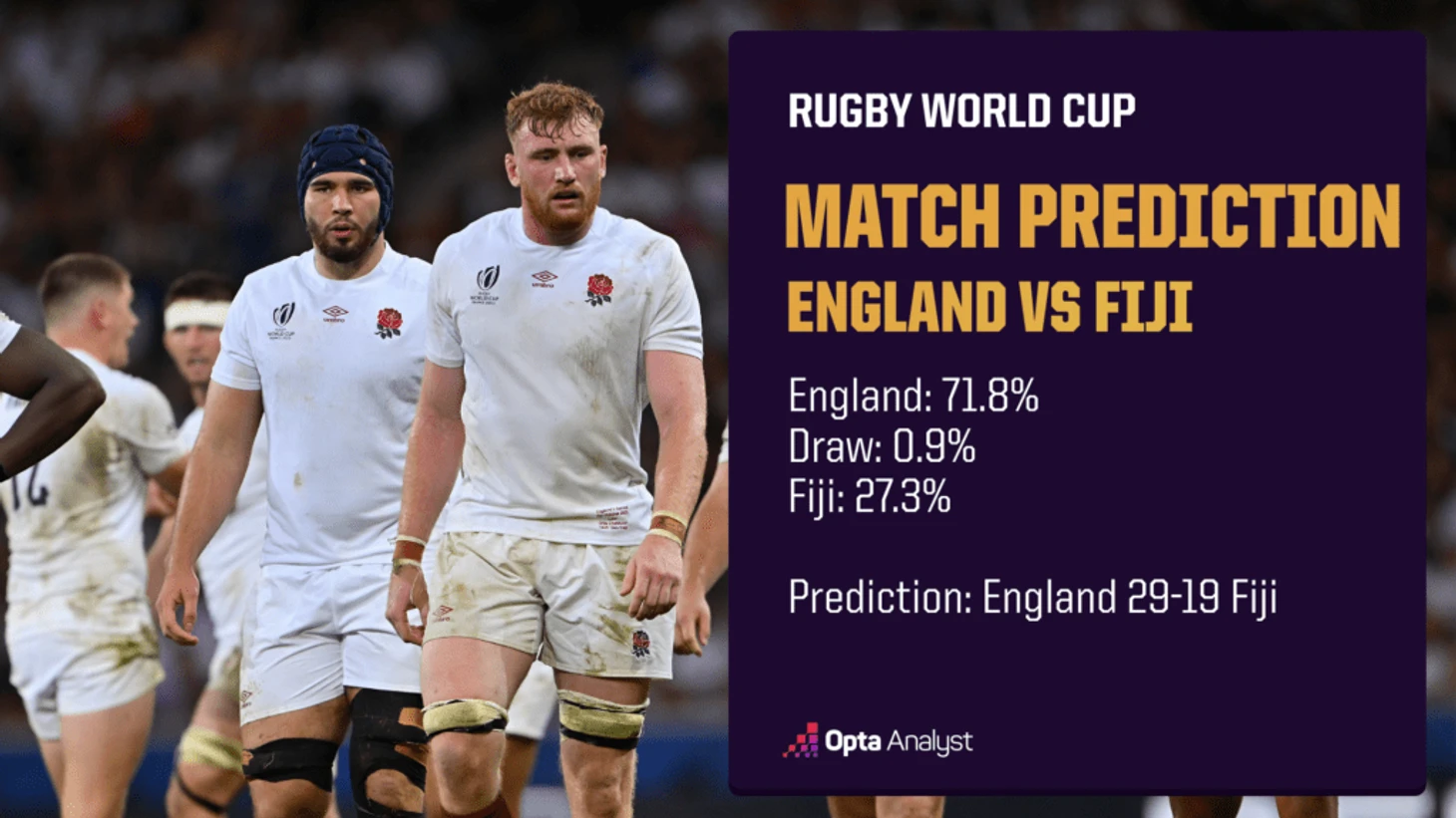 Прогноз на победу: Англия 71,8% – Ничья 0,9% – Фиджи 27,3%