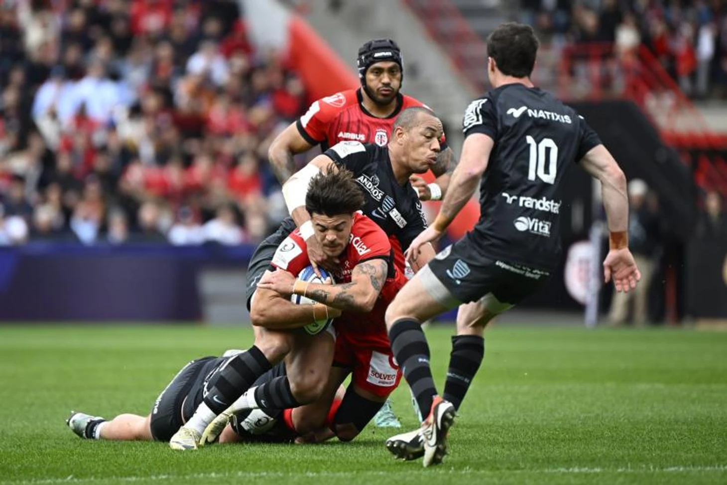Парижане и так не были фаворитами перед этой игрой, а тут ещё лишились основной связки 9-10. Нолан Ле Гаррек и Антуан Жибер синхронно выбыли из-за травм. А у «Тулузы» наоборот впервые за долгое время в старте появились Антуан Дюпон и Ромэн Нтамак.