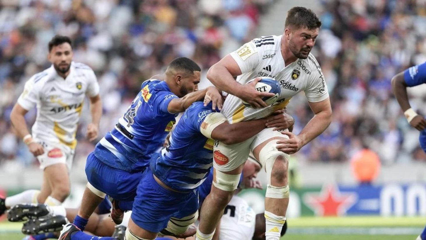 Вторая половина матча началась с ещё одного точного штрафного Либбока. Толу Лату попадает под двойной захват, который поднимает хукера французской команды в воздух. Однако, дальше инициатива стала переходить к гостям. После аута слева они ставят мол, а затем Грегори Олдритт рвётся к зачётке. Атака в 7 фаз завершается заносом Луи Пенверна. На 52-й минуте Левани Ботиа мощным захватом заставляет Рубена ван Хеердена расстаться с мячом. Игровое преимущество «Ля Рошели» росло.