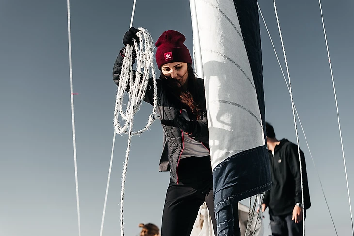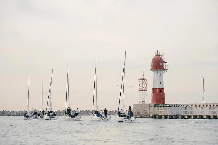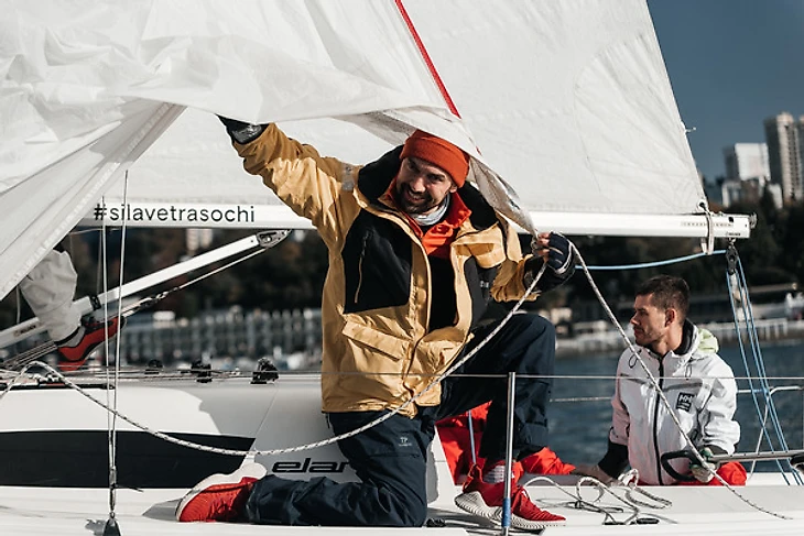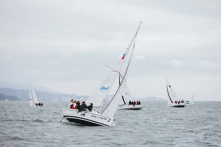 Самое главное в первый день — знакомство с яхтами и объединение в экипажи: нужно сразу понять, как работает каждая снасть на лодке, попробовать все роли в команде и опробовать основные маневры. Тренировки начинаются в 7:30 утра, когда яркое сочинское солнце уже выходит из-за гор, так что было жарко и весело. Ходить под парусом в порту Сочи запрещено, так что наши яхты связывают в караван и вытаскивают на буксире два катера. После тренировок — лекторий, который тоже поделен на два потока: для начинающих и лицей. Тут, правда, можно самостоятельно выбрать, какую лекцию хочется слушать. Ну и долгожданный финал дня — вечеринка знакомства, после которой всем еще долго не хотелось расходиться.