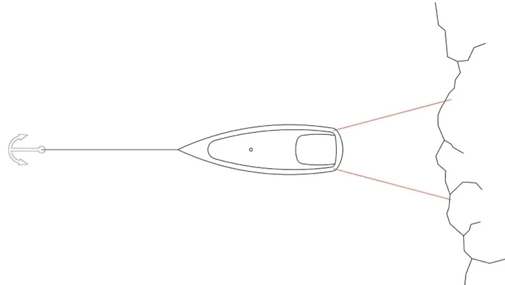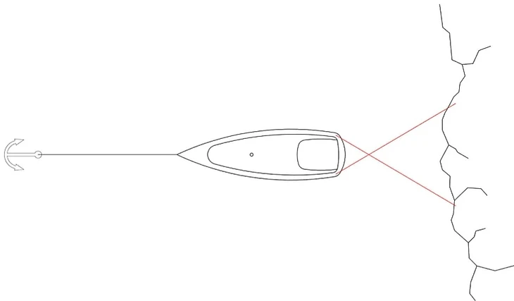 Как встать на якорь с растяжкой к берегу.