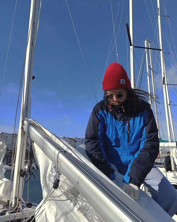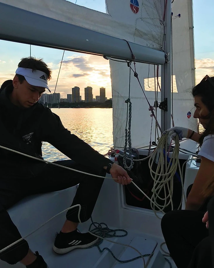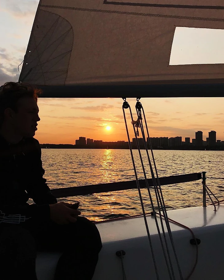 В конце августа все же договорилась с собой сходить на тренировку хотя бы ради красивых сториз на закате. Помню, как с командой спустилась в лодку, мы получили короткий инструктаж, распределили роли, подняли паруса и вышли на воду. Я удивилась той легкости, с которой все происходило. Дальше в процессе тренировки в голове, конечно, все смешалось – «привестись», «увалиться», «гик», «шкот», «бушприт», но осталось желание во всем разобраться. А еще появились эмоции, которых я не получала в своей жизни никогда. Короткая тренировка стала настоящим приключением.