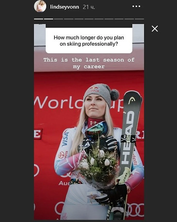 Американская горнолыжница Линдси Вонн сообщила, что сезон-2018/19 станет для нее последним.