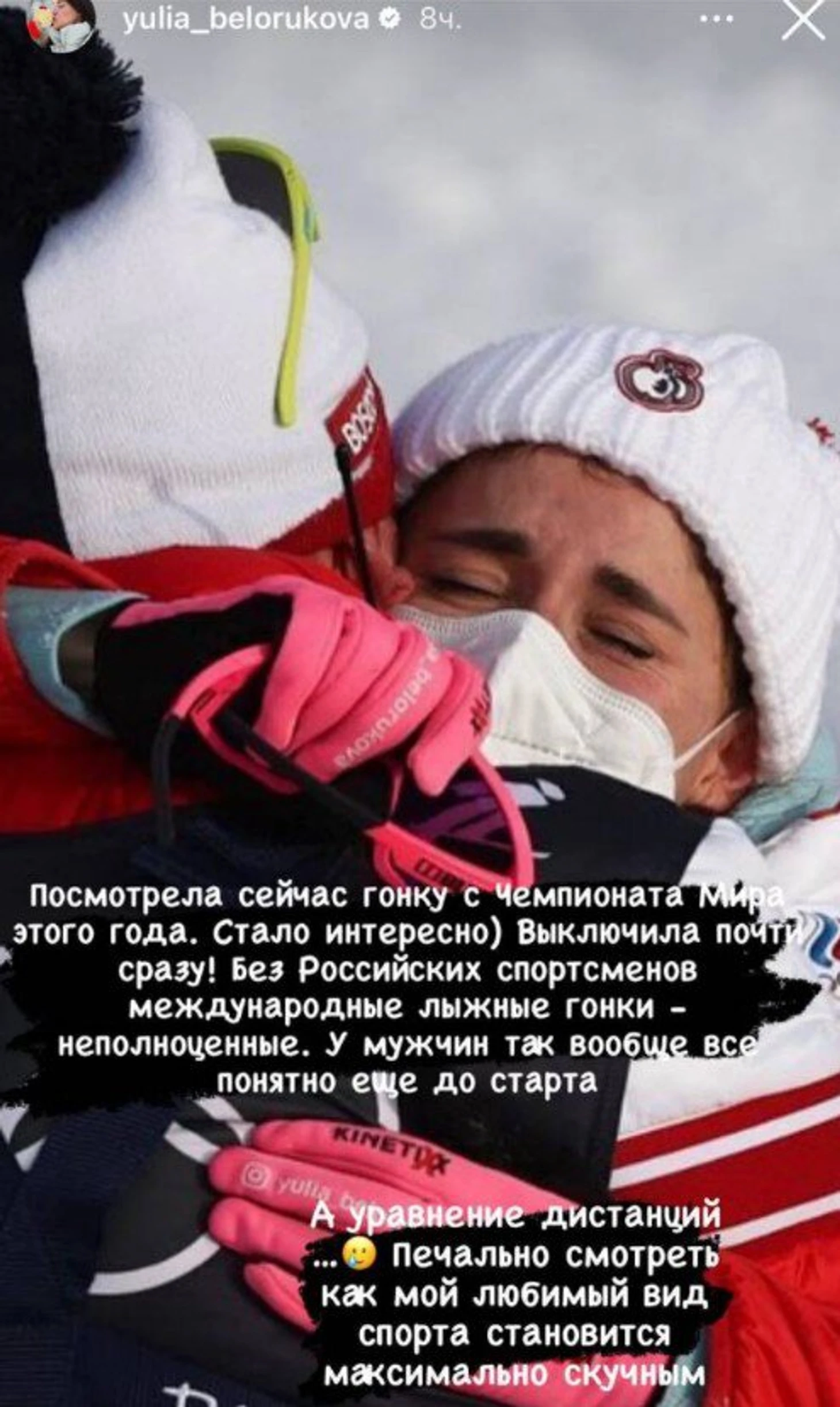 А уравнение дистанций... Печально смотреть, как мой любимый вид спорта становится максимально скучным», – написала олимпийская чемпионка 2022 года в эстафете.