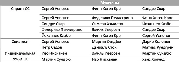 Победители и призеры этапов кубка мира по лыжным гонкам 2016/2017:
