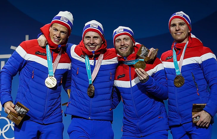 Мартин Суннбю, итальянец Франческо Де Фабиани и француз Морис Манификат вместе преследовали россиянина Сашу Большунова на втором этапе эстафеты , но неуклонно уступали российскому лыжнику, который возглавлял пелотон . В Пхёнчане у россиян явно были отличные классические лыжи. В середине второго этапа у Большунова было преимущество в 42 секунды, но, 21-летний лыжник из России проиграл немного ближе к передаче эстафеты .