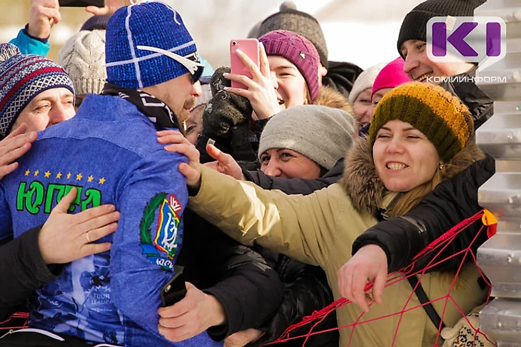 Сергей Устюгов после победы в спринте в объятиях болельщиков )))