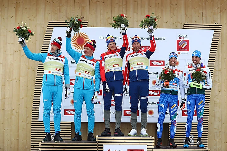 1. Норвегия (Эмиль Иверсен, Йоханнес Клэбо) – 18.49,86