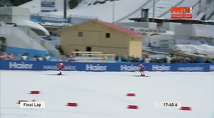 В начале спуска норвежец проигрывал Александру 10-12 метров, но уже на равнине вышел вперед, а затем только отрывался.