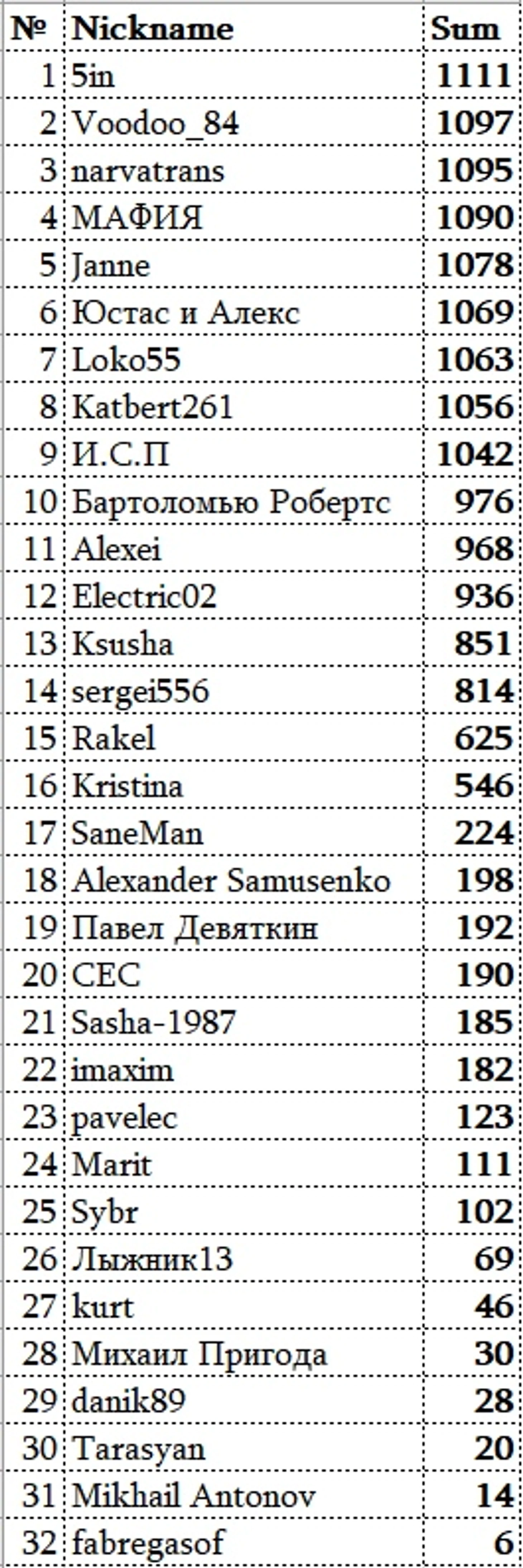 Серебро общего зачета достается Voodoo_84. Основатель конкурса вернулся на sports.ru и взял серебро в общем зачете сразу же.