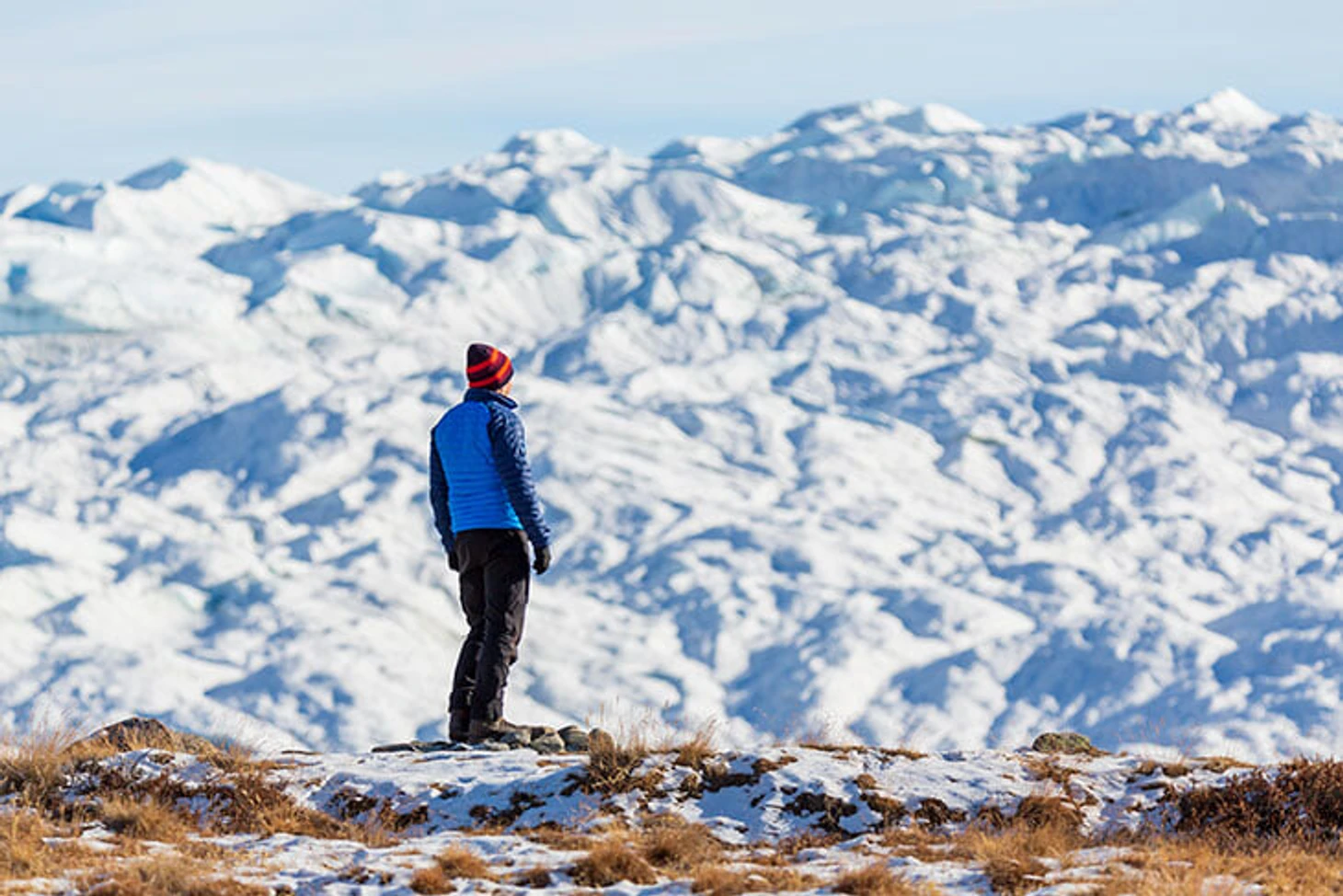 Я прокатился на собачьей упряжке, глядя, как мелькают перед глазами тринадцать задних пар лап и колышутся тринадцать хвостов (в гренландской упряжи, в отличие от парной на Аляске, собаки запряжены веером), и напоследок взял напрокат снегоход, теплый комбинезон и поехал за полсотни километров на ближайший ледник. Он находился внутри острова, на высоте 1500 метров над уровнем моря, и там было заметно холоднее, чем на берегу.