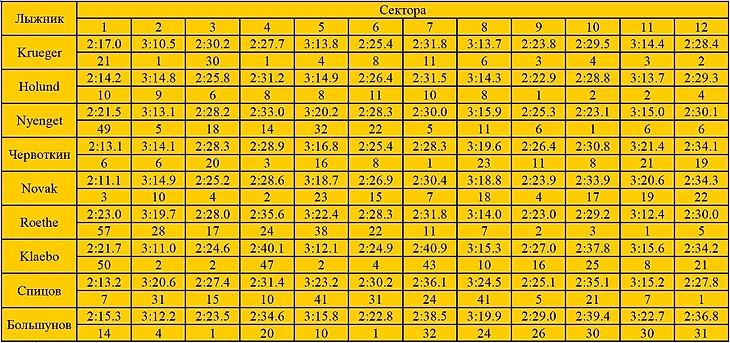 Здесь все гораздо печальнее. Видно, что норвежцы не начинали с места в карьер, а выдали все силы на последней трети дистанции, пример тот же Roethe, который на первом круге, как будто вышел на прогулку.