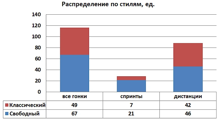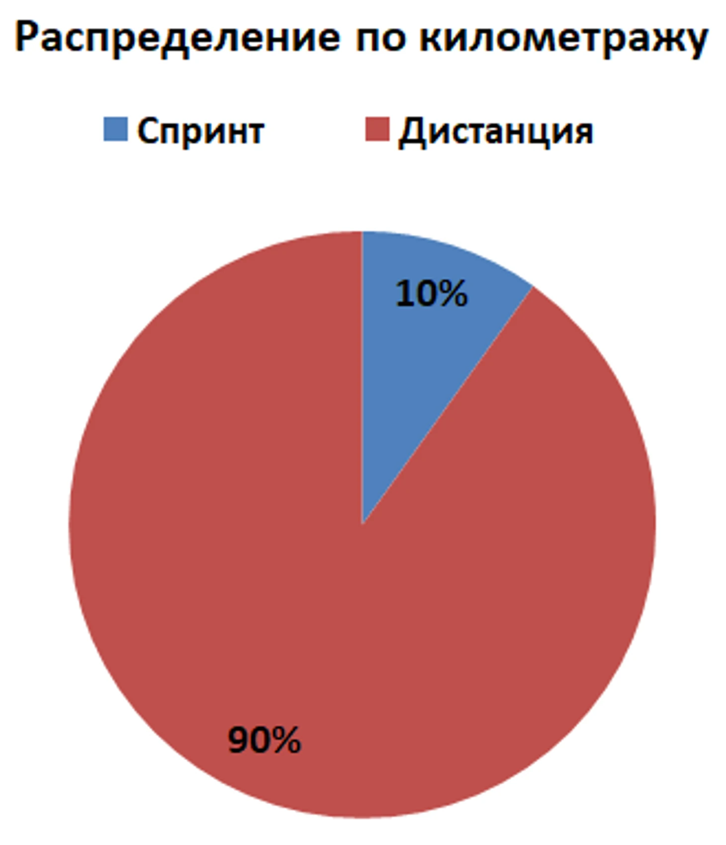 Протяженность спринта взял равным 5км, так как все победители и призеры до полуфиналов обычно доходят, соответственно, в среднем длина 1.5км, квалификация, четвертьфинал и полуфинал, тобишь 5км плюс минус.