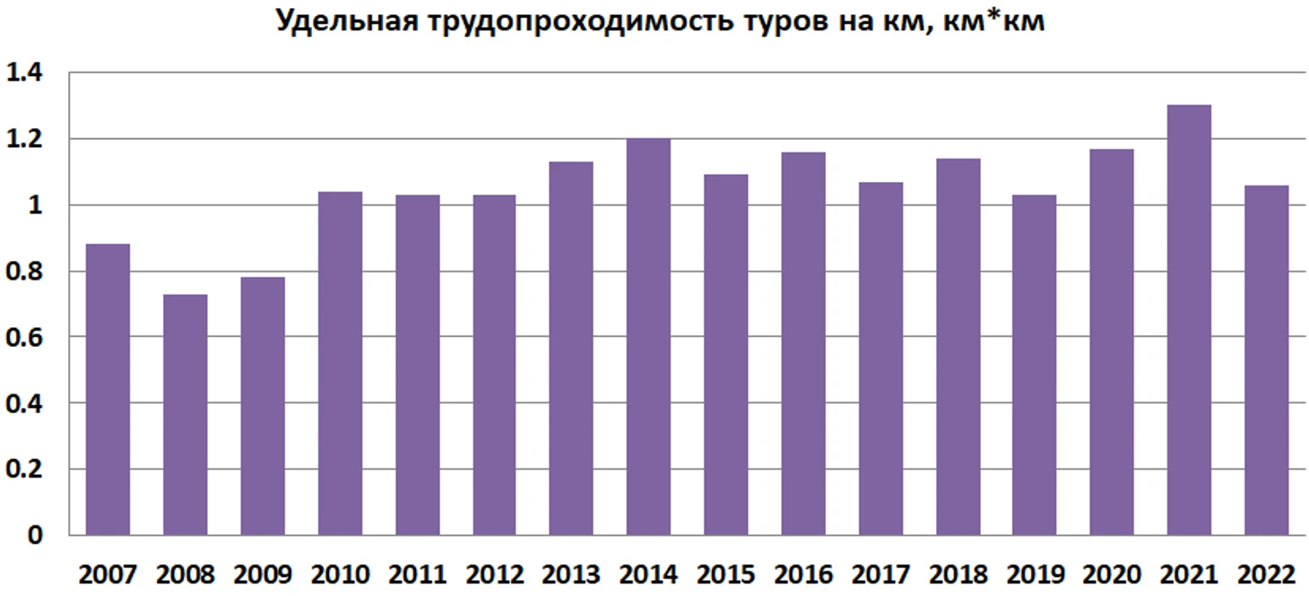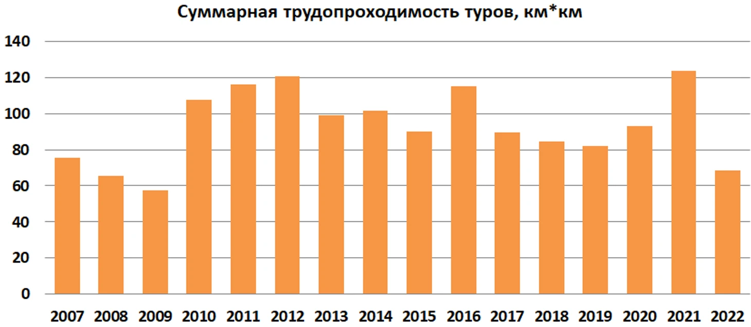 Далее привел такую характеристику, как "трудопроходимость", не знаю, как ее лучше назвать, смысл в том, что протяженность гонки в км умножается на высоту над уровнем моря и суммируется для каждого тура. То есть чем выше показатель, тем тяжелее лыжнику проходить каждый километр дистанции на высоте.