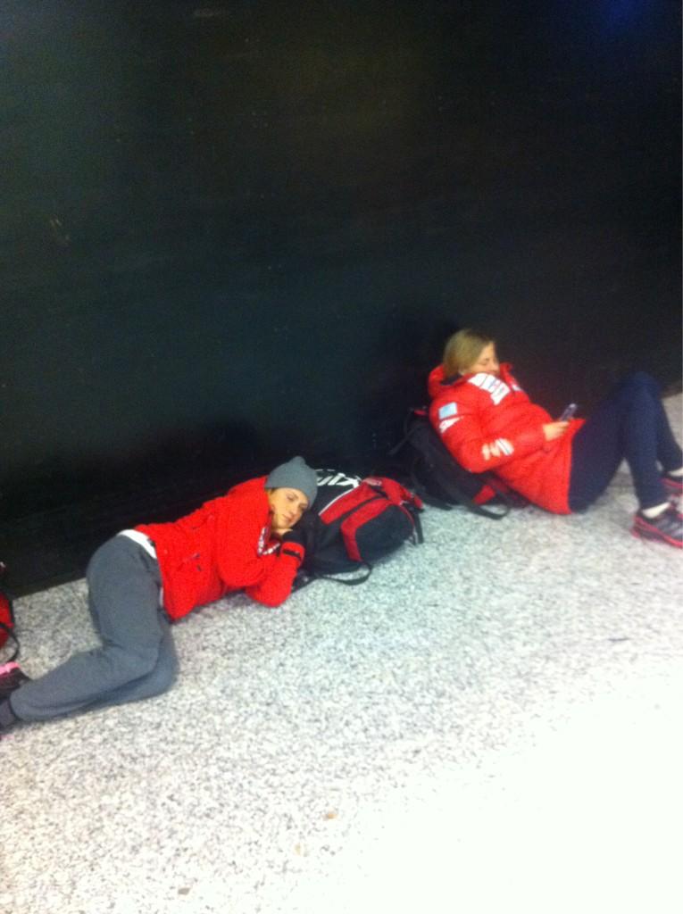 Эти девушки едут в лифте после последней тренировки в Валь Сеналесе сейчас.