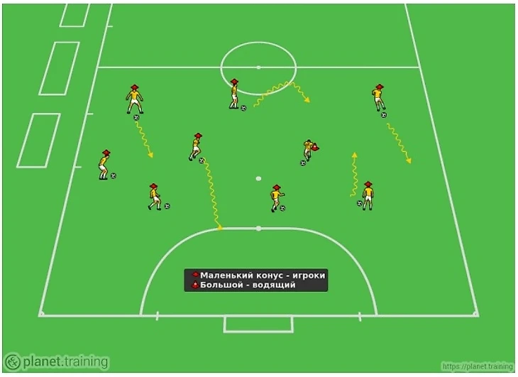 Основная цель: Обучение контролю мяча и разивитие периферического зрения