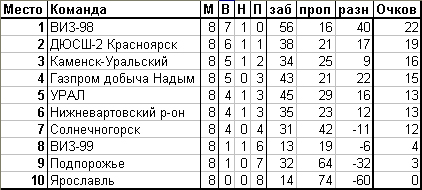 Таким образом, ВИЗ-98 был недосягаем для соперников уже вчера вечером, а вот матч за второе место обещал быть жарким. Посетить его не получилось, но результат скажу: Красноярск проиграл Синаре из Каменск-Уральского 2:3 и занял по итогам турнира третье место, а Синара поднялась на второе. ВИЗ-98 же одержал в последний день турнира очередную победу.