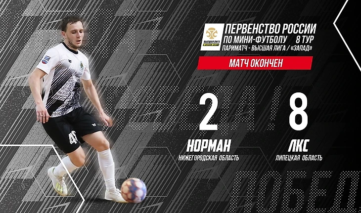 2:8 — победа ЛКС, которая позволила липчанам догнать по очкам лидера турнира «Газпром Бурение», уступившего в Щёлково московскому «Спартаку». Следующий матч мини-футбольный клуб ЛКС проведёт 21 ноября, в Липецк приедут дублёры «Газпром-Югры».