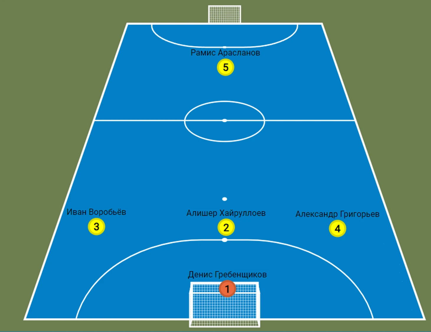 Денис Иванов - игрок, который ранее выступал в лиге в роли голкипера. На схеме он тоже записан голкипером, но скорее номинально. В последнее время Денис стал ещё и хорошим полевым игроком, ориентированным на работу в обороне. И именно в этой роли мы его увидим в стартовом матче команды.