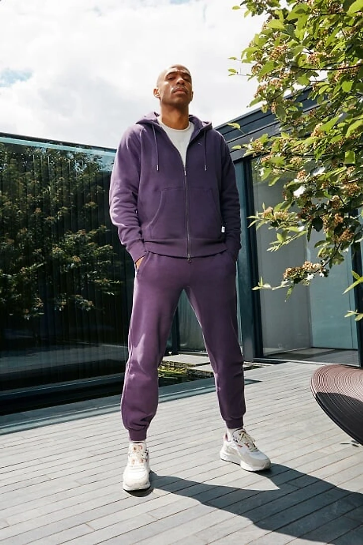 Тьерри Анри: Мне она в целом нравится. Например, полностью бежевые брюки с ярким фиолетовым акцентом. Я также высоко оценил материалы: люблю, когда ткани не соприкасаются с кожей. В коллекции MMQ нет определенной вещи, которую я выделяю больше остальных, я люблю подход, с которым создана вся капсула.