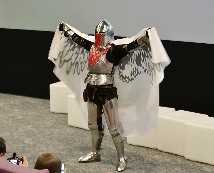 Маскотом сборной Беларуси стал трансформер. Оружие – меч с вышивкой