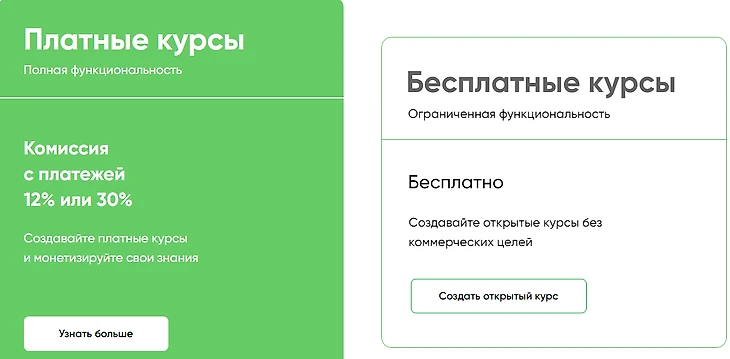 Конструктор онлайн-курсов позволяет делиться своими знаниями на самой крупной в России образовательной платформе. Ресурс предоставляет широкий набор функциональных инструментов для дистанционного обучения: от прямых трансляций до удобной автоматизации учебного процесса. Пользователь сам решает как публиковать свои материалы: платно или безвозмездно. Для бесплатного пользования доступны лишь базовые функции ресурса. Если же автор планирует  разместить материалы платно, то функциональность конструктора будет полная, но в этом случае оплачивается комиссия в пользу Степик с каждой покупки курса. Учащиеся смогут вносить оплату прямо на ресурсе в национальной или иной валюте.
