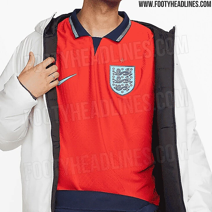 Английская форма еще не представлена, но вот как она будет выглядеть. Домашний комплект сочетает традиционный белый цвет необычным принтом на плечах в разных оттенках синего.