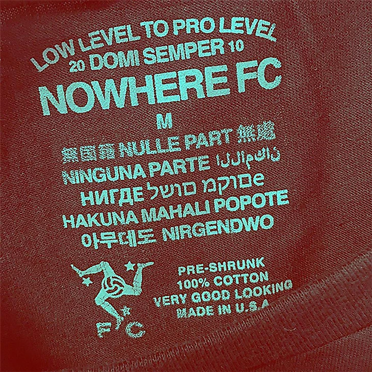 Сегодня Nowhere FC играет в нью-йоркской любительской футбольной лиге Bowery Premier League. Они даже пару раз ее выигрывали, но известность клубу принесла не игра, а одежда под лейблом Nowhere FС, выполненная в стиле знаменитых форм других команд. Дизайн придумывает Москоко.