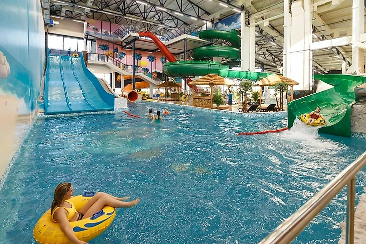 Аквапарк: водные горки различной сложности, включая зоны для малышей с мелкими бассейнами и экстремальные горки для любителей адреналина.