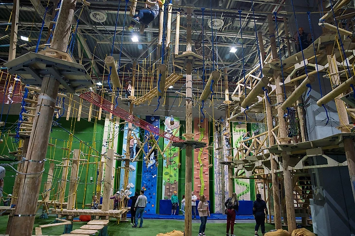 Веревочные трассы: маршруты разной сложности, от простых для детей до сложных для подростков и взрослых.