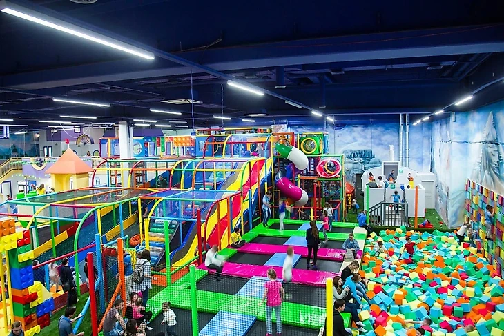 Батутные зоны: просторные зоны с батутами для прыжков и игр.