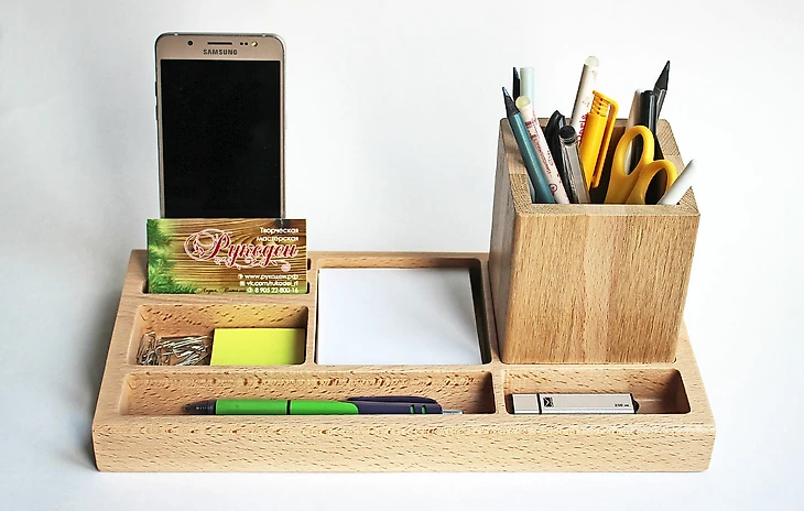 Элегантный настольный органайзер — это идеальный баланс между функциональностью и стилем. Изделие из дерева, акрила или металла украсит рабочий стол, помогая сохранять порядок. Органайзер может включать отделения для ручек, телефона, стикеров и других офисных принадлежностей. Такой подарок будет полезен как в офисе, так и дома, особенно для коллег, которые ценят уют и практичность. Помимо своей функциональности, органайзер выглядит как стильный аксессуар, который добавляет рабочему месту завершенности.