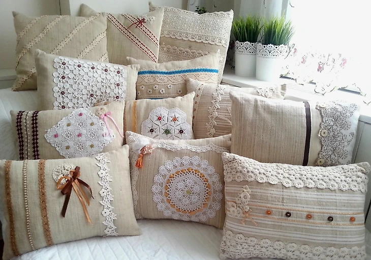 Новые подушки, которые украшены вышивкой и аппликацией, придадут интерьеру особый шарм.